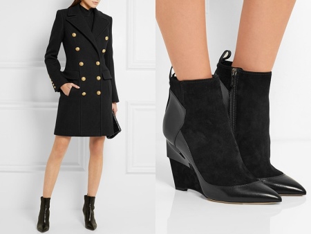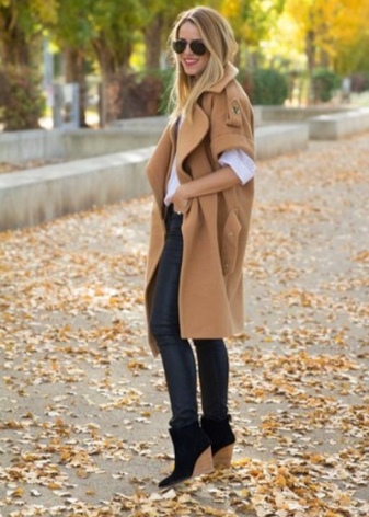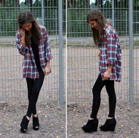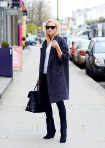With wedge ankle boots, a coat of almost any cut to a knee length or higher will look good. It is worth refusing only long coats to the floor, which in such a tandem look ridiculous.