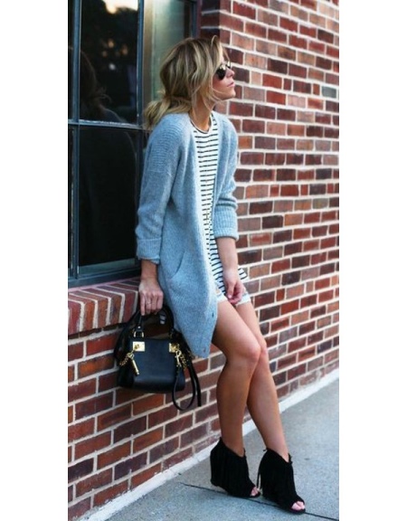 Wear suede ankle boots with a flared skirt up to the knee or slightly higher. A chiffon skirt in combination with a knit sweater will look especially impressive. Choose tights to match the shoes so that the legs look longer.