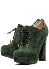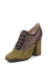 A casual option is presented in the Adrenwhol Credecoeur collection. Suede patterns combine two colors: deep olive and dark green. The heel is low and stable, which allows you to wear such shoes for work.