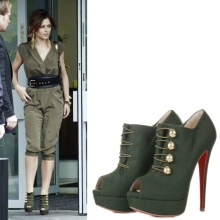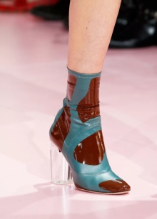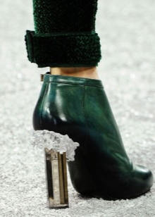 Many brands present green ankle boots on the catwalks. Attention is drawn to the model of evening shoes from Louis Vuitton.
