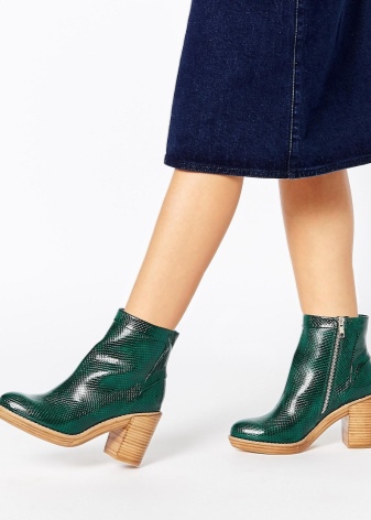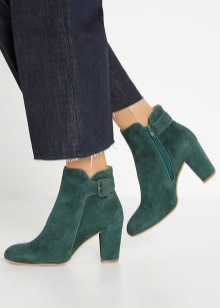 - Finally, the most beautiful color of the ankle boots - emerald. For such shoes you need to choose clothes in cold, the same amazing shades. It can be wine, rich burgundy, raspberry, purple, lemon.