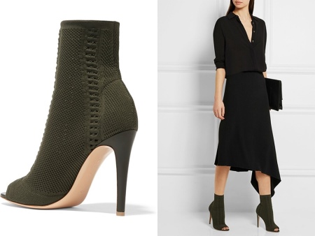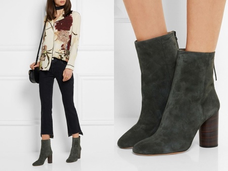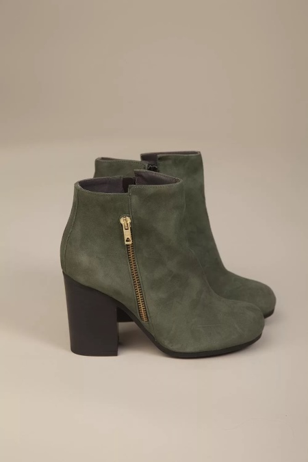- The combination of gray and green creates a democratic shade that is both bright and muted. For ankle boots in this shade, it is easy to choose clothes and accessories.