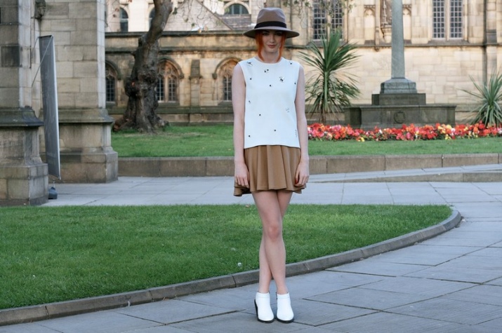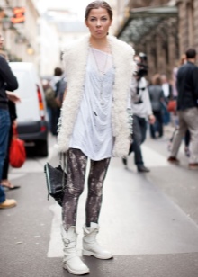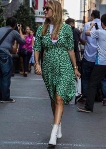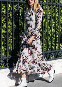 So, with white boots, stylists recommend combining voluminous dresses made of light fabrics in the style of boho. Thanks to the "flying" materials and small delicate prints that are inherent in this direction in style, such an image will look as romantic and feminine as possible.