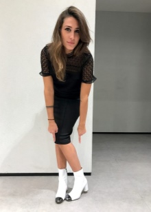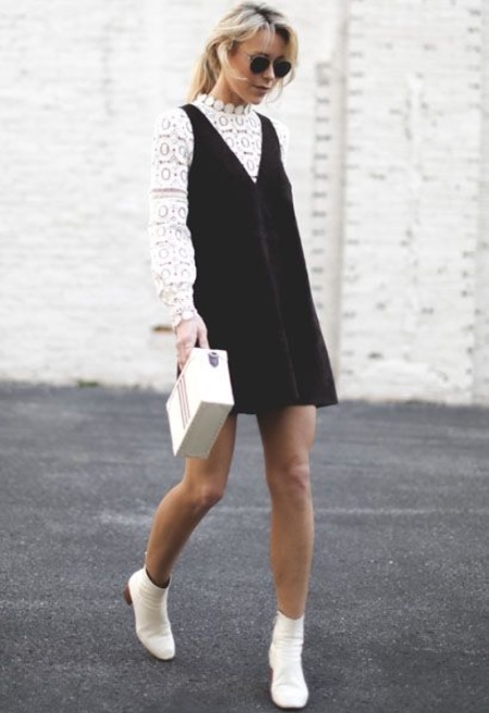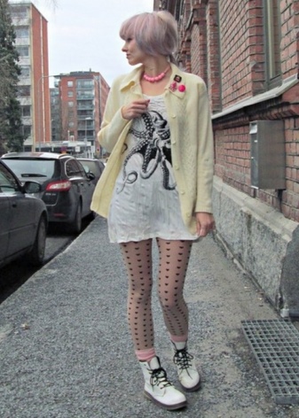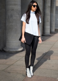 Boots in white biker style are suitable for completing the image, consisting of a tight black dress, complemented by tights in a large mesh and leather, or to a simpler outfit.