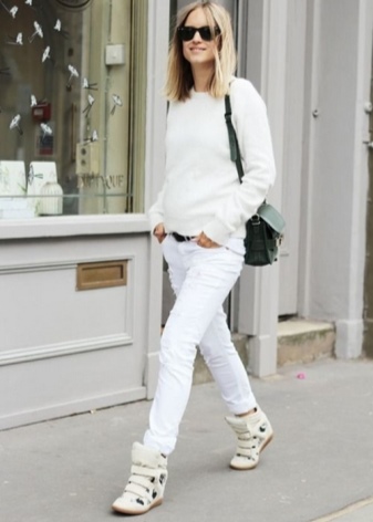 White shoes have the ability to visually shorten the silhouette of their owner, which is why stylists do not recommend buying shoes of this color to low girls. However, it is worth considering the fact that the combination of white shoes with white pants on a high waist, on the contrary, can visually make a girl taller, so before buying any pair of shoes, you should consider the rest of the existing wardrobe.