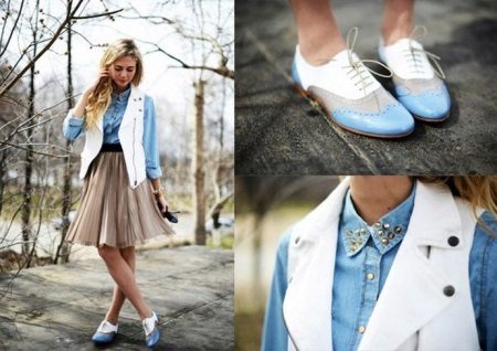 When choosing a wardrobe in combination with brogues, it is necessary to take into account the color scheme, length and proportions of the silhouette.