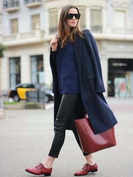 Brogues are well combined with outerwear - a cocoon coat, oversize, elongated jackets, short leather jackets.