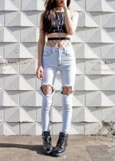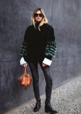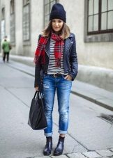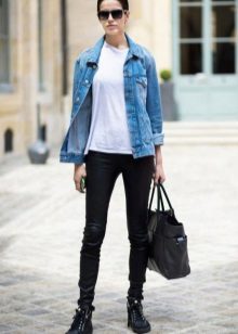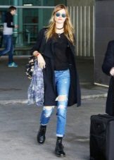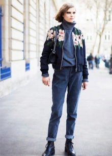 Black boots are perfect for any style of jeans. It can be skinny, boyfriends or mom-jeans trendy now. If you want your legs to look longer, opt for black jeans. But if you are not afraid of experiments, you can choose light or blue. They will look great with a bomber or blazer.