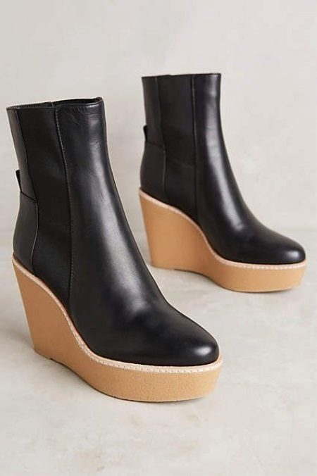 Wedge shoes are especially popular with the fair sex. They can boast of comfortable wearing and the fact that they are able to make visual correction of a female figure. The legs in them will look tightened, and the silhouette is slimmer.