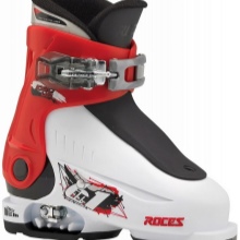 For kids, they produce the simplest ski boots, but they look like adults. They have an outer and inner boot. The inner is soft, it is taken out. Outside there is one single clasp, it is called a clip.