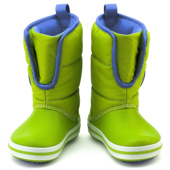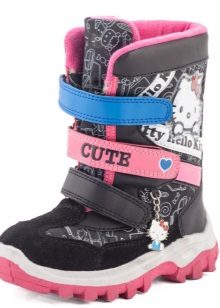 - The smaller the child, the more happy he will be to various decorations on his winter boots. So, for example, very luminous boots look original, with images of your favorite cartoon characters. The main emphasis in the fastener of children's winter boots is on Velcro, as the main means of fixing the foot, and lacing - increasing and decreasing the volume of the leg itself - for the convenience of the baby.
