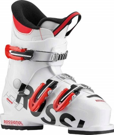 ROSSIGNOL HERO J 3. Children's ski boots. Hardness 40. Designed for beginners. It is convenient to take off and put on without the help of parents. The warmest inside, stylish outside. Often recommended by parents.