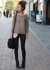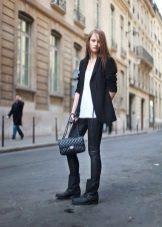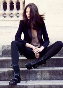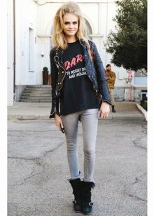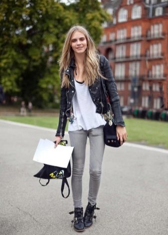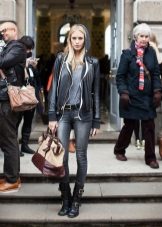 A classic image based on grinders must have leather clothes. This can be a biker jacket, leather pants, knitted, slightly stretched, a sweater and large metal jewelry. From such well-known elements, you can create a completely unique image.