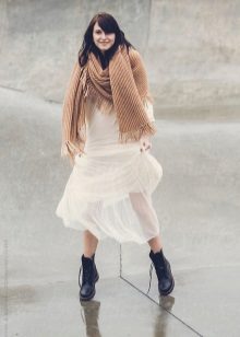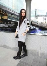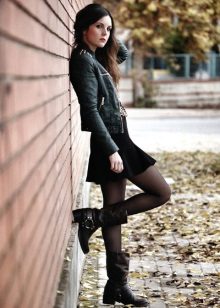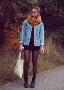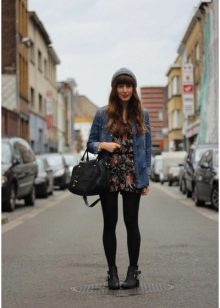 With the onset of cold weather, a light dress changes to a woolen one. Grinders look chic with torn dense black or colored tights, which hide sexuality, rampant and rebellion. Instead of tights, knit socks can be used.