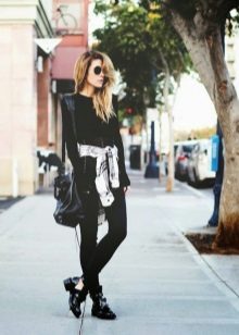 Grinders and shorts are another good option for creating an original image. Open legs will be fraught with a bit of sexuality, in rude shoes embody the audacity and challenge of the public. For the top, it is best to choose t-shirts in the appropriate style.