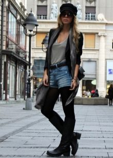The combination of shorts and grinders has already been discussed in one of the sections. Here is a confirmation of the success of such a combination. A T-shirt with the image of a rock band and a plaid shirt casually tied around the belt very harmoniously merge into the image of a daring person who sets its own rules in fashion and life.