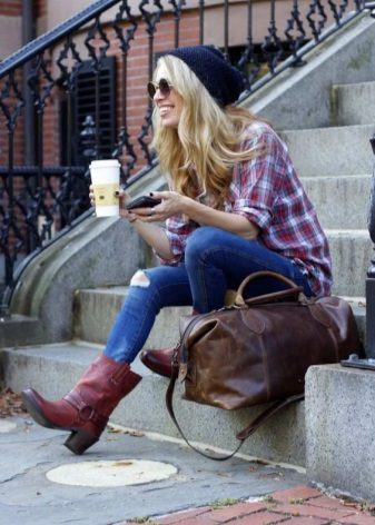 Who dares to say that this image is devoid of sexuality? It's just that everything was skillfully selected, the advantages of each element, including rough shoes, were used. Grinders in this look balance outright shorts and a seductive plaid shirt. The result is a unique multifaceted image that evokes mixed feelings, but definitely attracts attention, especially men's.