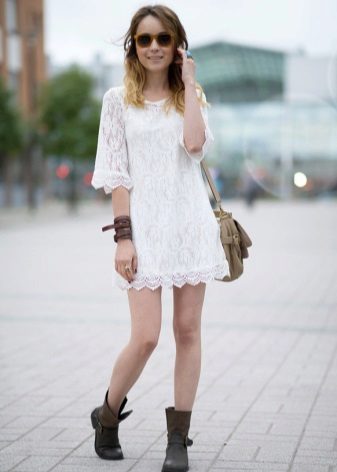 If incompatible things are often combined in your images, then the combination of Grinders with dresses is created just for you. Designers took a desperate step, offering to wear rude and brutal grinders with all kinds of dresses. The popularity of such images was not long in coming. The dress can be evening or summer, sewn from light fabrics, it is also acceptable to wear sundresses and skirts under the grinders. Similar images are based on a mixture of different styles, a combination of femininity and brutality.