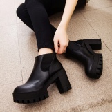 Models of short leather boots on a high platform with a wide and massive heel gained popularity among young and stylish girls. Moreover, the platform can be deliberately rough, embossed in combination with a laconic top.