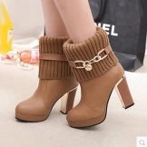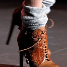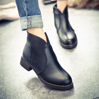 Tractor-soled shoes look unusually fashionable- a platform sole or a platform with a wide massive heel. Such a deliberate rudeness of the sole in combination with a strict upper boot can emphasize the fragility and femininity of any girl.