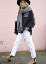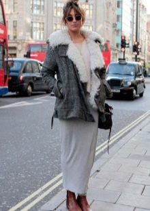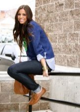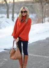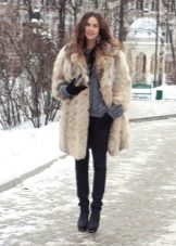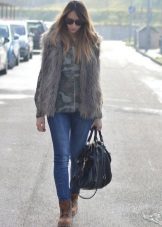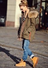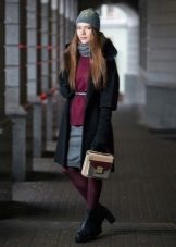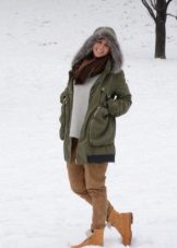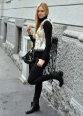 - Winter leather boots with fur trim are best combined with clothes or an accessory with the same fur trim: hood on a jacket, bag with fur, vest, scarf, etc. It should also be remembered that boots with fur visually look heavier than ordinary ones and in accordance with this, you need to carefully select things for them.