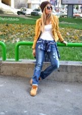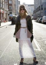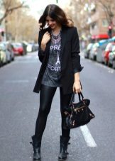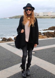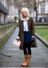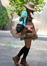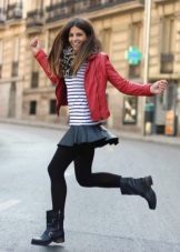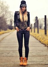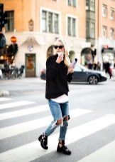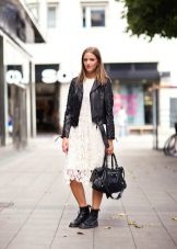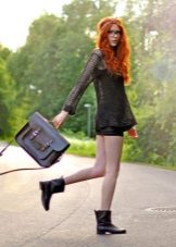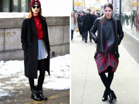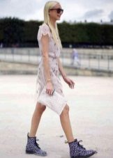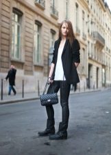 - Deliberately “men's” leather boots or boots on a rough “tractor” sole are combined with very feminine things: lace, flying light fabric. Those. it can be short skirts, a lace blouse, an elegant flying dress. In this way, the "male" part should be only one - in our case, leather shoes.