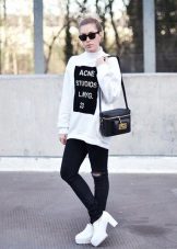 For urban fashionistas, leather boots are offered on a platform of different heights, with a wide, steady heel or stilettos. Such shoes will visually increase growth and give the image femininity and harmony to the silhouette.