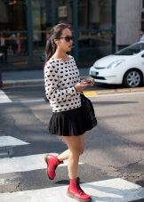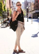 - It should be borne in mind that comfortable shoes without a heel or with a low wide heel do not visually stretch growth. And when choosing a wardrobe for such shoes, you should pay attention to things that will make the figure slimmer: skinny pants, pipe pants, shorts, jeggings, mini skirts, short dresses. Pants are desirable to choose such a length to open the ankle.