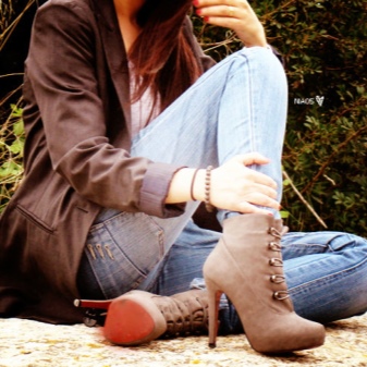 Stylists offer suede boot options to elegant ladies. Such shoes are emphasized by a sophisticated and elegant cut, a cross between boots and shoes.