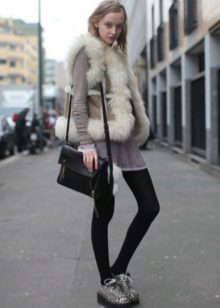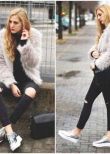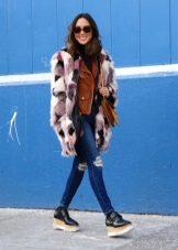 In winter, creeps will look great with a park or with a fur coat. Of course, the latter should be a match for shoes - made of bright faux fur, plain or multi-colored.
