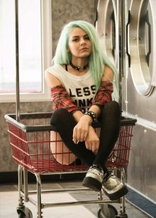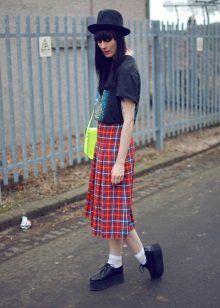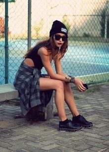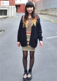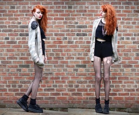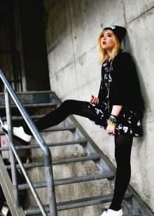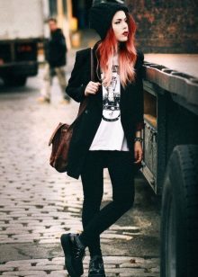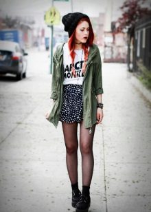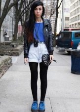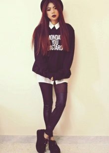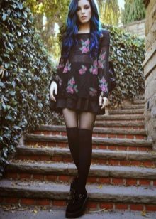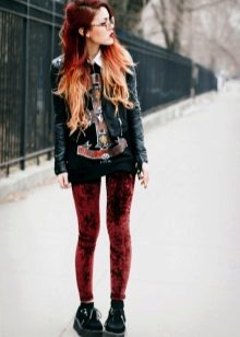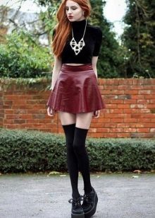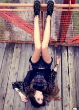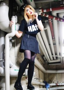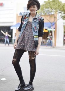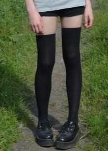 Fans of grunge will surely like tall black stockings and leggings that can be worn over or without pantyhose, combined with a dress, skirt or shorts.