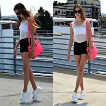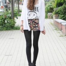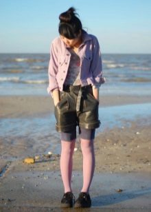 You can wear them with a long stretched sweater or a stylish T-shirt, throwing a shirt on top. If you decide to wear shorts in the autumn-winter period, you can wear them with tight tights, leggings, stockings.A variety of variations on this subject are welcome.