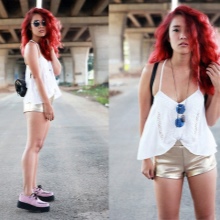 Girls love to wear creepers with shorts, and they can’t be blamed for it! The tandem is really very successful. Shorts can be very short or reach the middle of the thigh for your taste. True, it is better to refuse from long shorts to a knee.