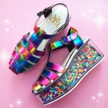 Fashion for creepers with a transparent platform was introduced by the American brand YRU (Youth Rise Up). They create shoes for informal youth who prefer unusual, sometimes even freakish, shoes.