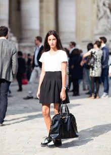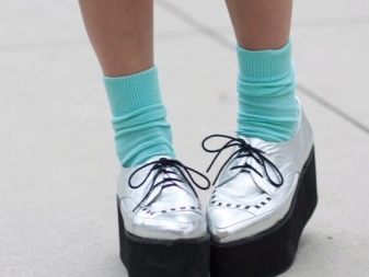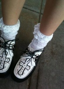 Traditionally, white ankle socks are selected for them, young girls prefer socks with a lace frill. If you like to be in the spotlight, you can pick up socks of bright neon colors, which will become the main focus of the image. Otherwise - dark plain socks without a pattern.