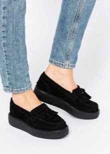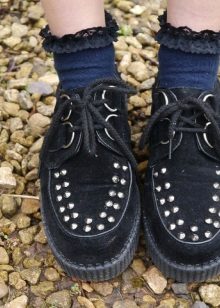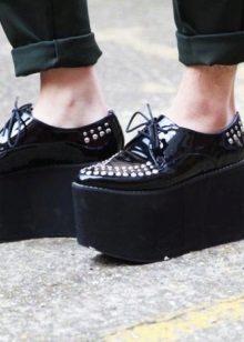 Creepers are not only on a thick sole or platform, but also on the heel. Brave girls will surely like the "irons" on a tractor sole with a massive heel. Understand that these are really crippers, we can, thanks to the classic toe.