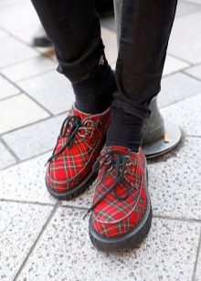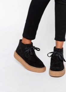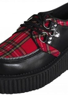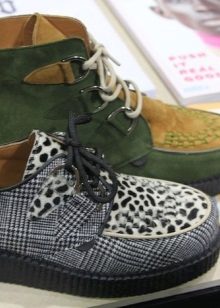 Classic creepers have suede tops, and laces or several straps can serve as a clasp, as on monk boots. Mandatory presence of edged toe and piping along it. True, today designers are experimenting with styles, so that only the presence of a thick sole remains mandatory.