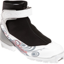 Shoes put on easily and quickly due to the presence of a quick lacing system. Inside the boot are shock absorbing pads. The manufacturer made it impossible to twist the sole, due to the use of the main insole of polyethylene and cardboard. Thus, it was possible to improve the fixation of the boot in the ski mount. The insole has a multilayer structure, which is created from materials with varying degrees of stiffness. With these boots, the skis become manageable and are easily controlled by the athlete.