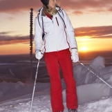 The selection of sports items provided by this brand is quite large. Among them there are ski boots made in the same color scheme as skis and ski poles.