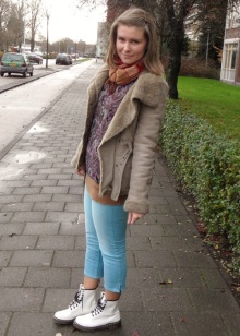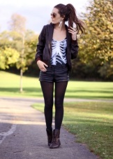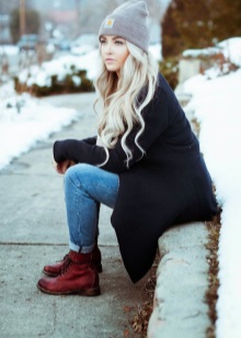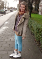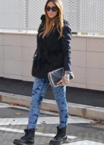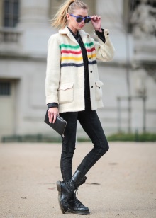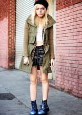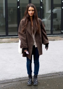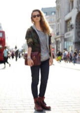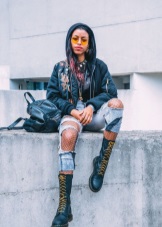 If you want aggressiveness in the image, black color and clothing made of leather, camouflage and denim will help to manifest it. For example, in winter, martins, blue jeans, a gray sweatshirt and a khaki parka will perfectly combine, in autumn the park can be replaced with a bomber.