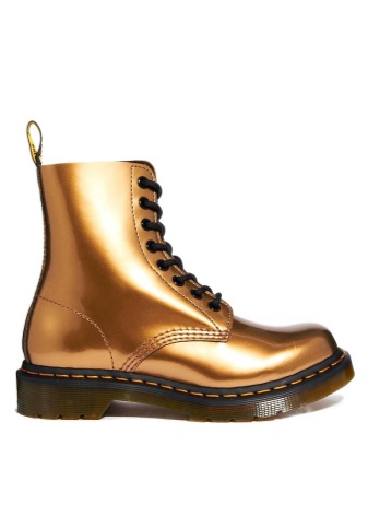 This season, at the peak of popularity, boots made of metallic leather, because this is a real trend of the season. Silver, golden, raspberry and blue - shiny berets Dr. Martens will be a real highlight of your image.