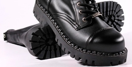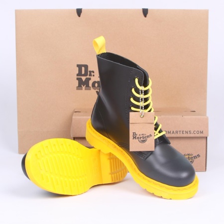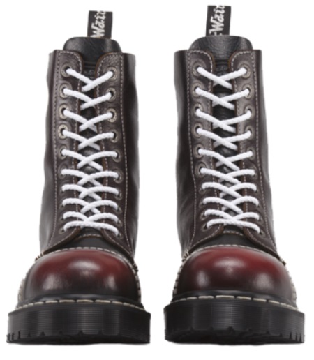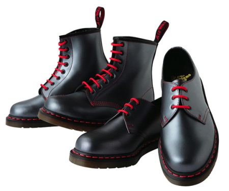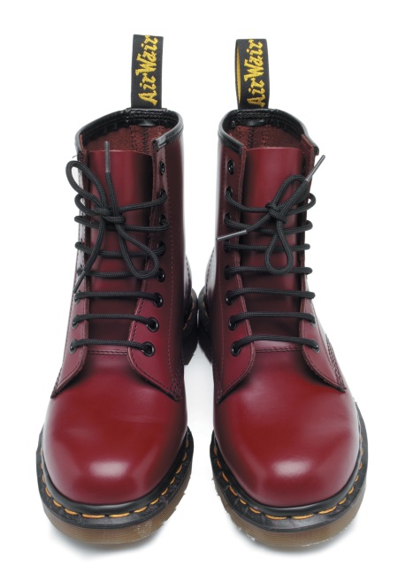The first official martins had such an appearance, the code for which today we mean the classic model: a rounded toe, a sole with a tread, a metal toe, 8 holes for the laces, cherry color and signature yellow stitching. On each pair was sewn on a strap with the inscription “AirWair”.