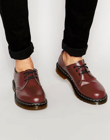 Short berets Martens is a classic, it is the first model under number 1460 with eight holes for laces, which has gained worldwide popularity. The color gamut of the models is diverse, but, unlike high ones, low berets combine perfectly with almost any clothing.There are no restrictions; don’t wear them, except with a business suit, if you have a strict dress code at work.