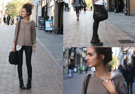 They will look great together with skinny jeans or a short skirt, because a flat sole and a masculine appearance will smooth out a certain vulgarity that sometimes slips in a combination of high boots and a mini skirt.