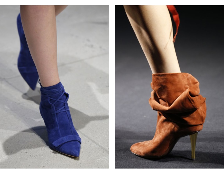 - Ankle boots. A very feminine and elegant version of the boots. They are an average option between ankle boots and demi-season shoes. Can be made of matte and patent leather, suede and other materials. They have a heel, platform, wedges, can be flat. The clasp can be very different. All-season shoe option.