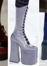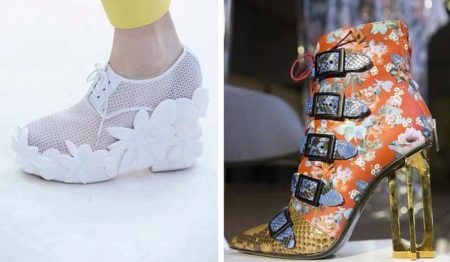 Fans of an extraordinary style, designers also come to the rescue, given the most unusual desires. Fashion for extravagant heels and platforms is an integral part of the 2017 season. These can be narrow heels at the top, and wide, triangular at the bottom, with an inclination to the sole. Balenciaga, Marni, Givenchy, Versace - the main fashion houses that add such elements to their shoe collections.