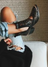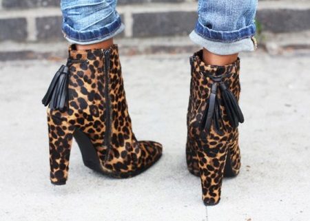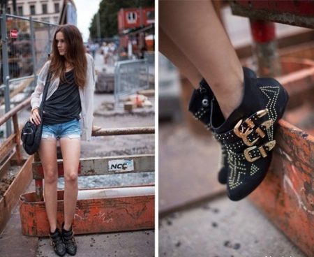 Can be presented with heels and flat shoes. Lovers of an active lifestyle are preferable to choose the second option. For an evening out, heeled shoes are the best fit. They are not deprived of decor and will look elegant. Rather, it’s not even shoes, but ankle boots, where lightning is a kind of highlight.