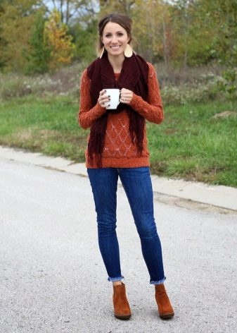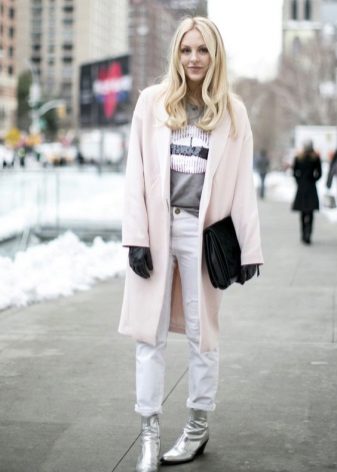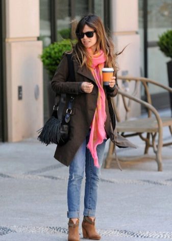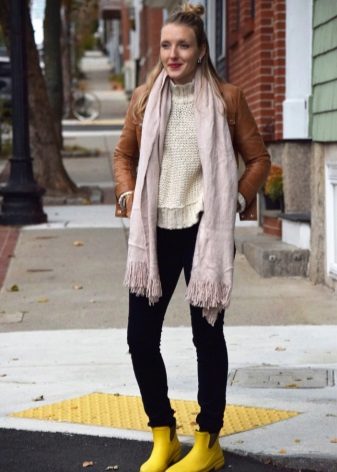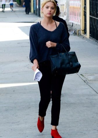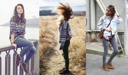 If the shoes are high, then this also involves the creation of various images. Tucked or tucked jeans, skinny trousers, as well as skirts and dresses to the knee or slightly lower, will organically fit into the bow.