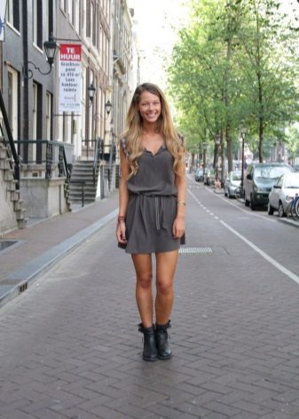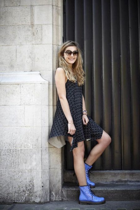 Girls who are not afraid of experiments can try to combine two styles at once, combining a light dress and military boots.They complement each other well and give the image femininity.