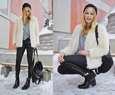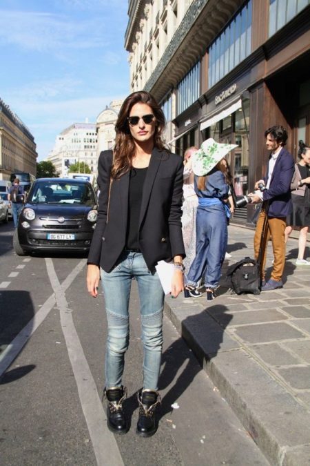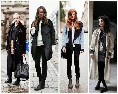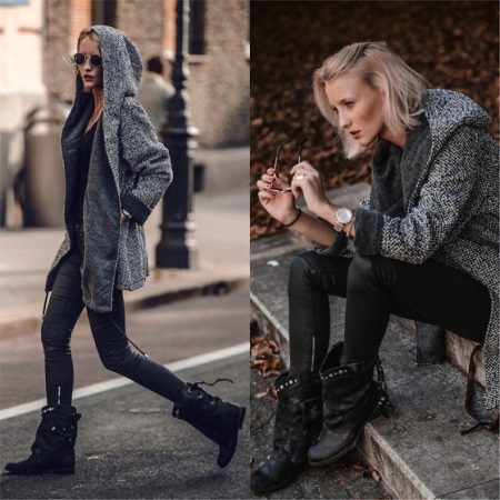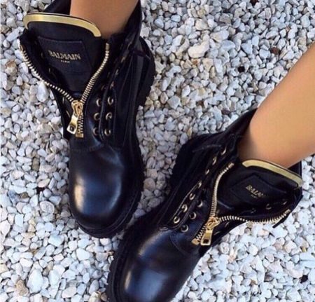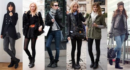 Massive brutal boots are liked not only by bikers, but also by girls who have recently adopted this fashion. A little more sophisticated, they are a casual model that harmonizes well with skinny jeans, black leggings, a short skirt. At the same time, a jacket-jacket is a win-win option.